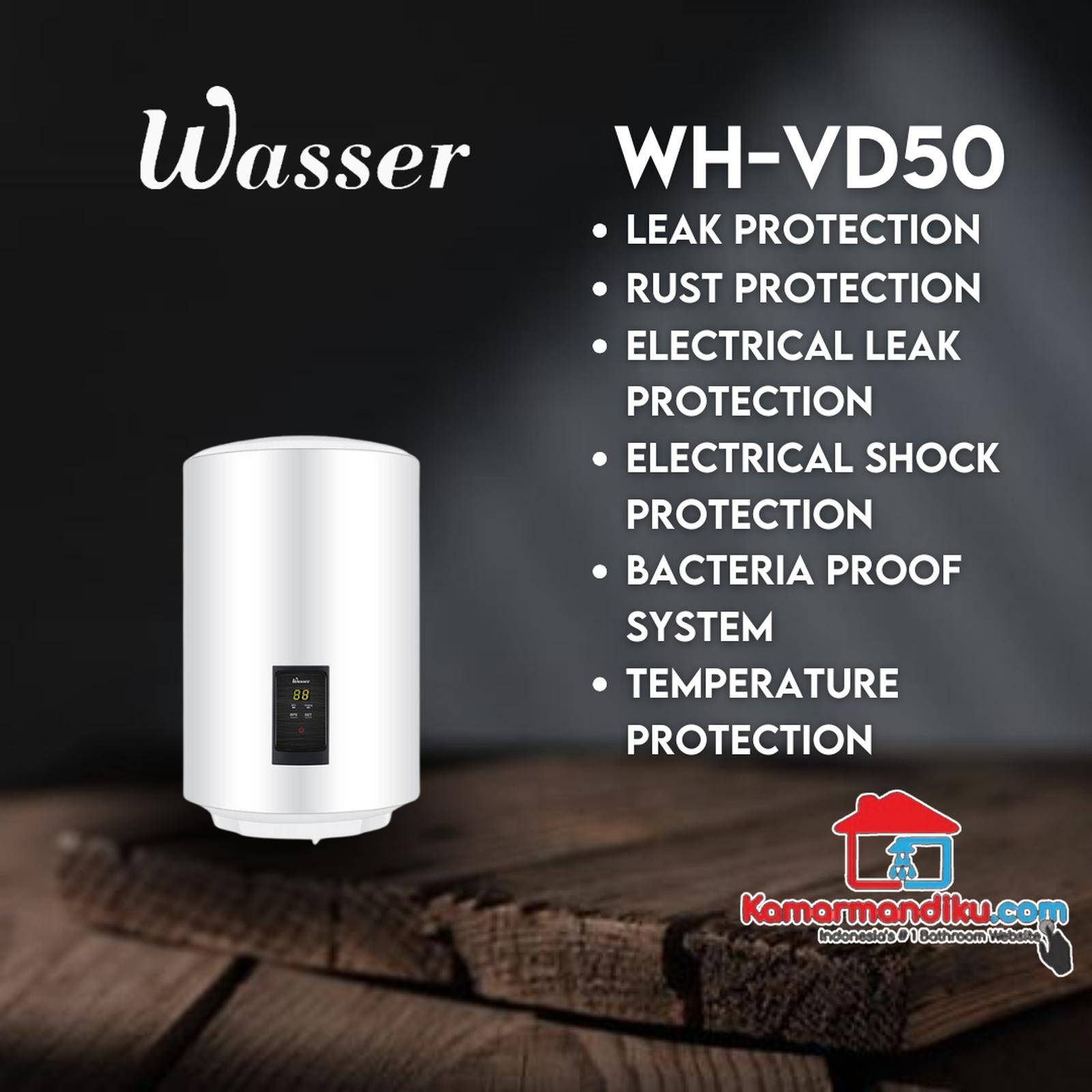Model: Terra Type: WH-M 50 Capacity: 50 Liter Daya listrik: 800 W Voltage: 220 V Pressure: 0,75 MPA Temperature Maks: 75 Derajat Proteksi Dari Wasser : 1. Proteksi Sengatan Listrik, dilengkapi dengan Shock Proff untuk mengurangi resiko terjadi sengatan listrik pada saat penggunaan. 2. Proteksi Bakteri dilengkapi dengan Mode Bakteria proff sistem, untuk memusnahkan bakteri dalam air (memanaskan air hingga 80 derajat) 3. Proteksi Karat // Magnesium Anoda lebih besar 20% menjadikan proteksi tangki terhadap karat lebih tahan lama. 4. Proteksi Kebocoran // Incoloy Heating Element dengan flange 5 baut. 5. Proteksi Kebocoran Listrik // Unit dilengkapi dengan ELCB pengaman terhadap kebocoran arus listrik. 6. Proteksi suhu air // Dilengkapi dengan termostat ganda yang fungsinya untuk menyalakan/ mematikan heating element dan juga mencegah terjadinya over heating