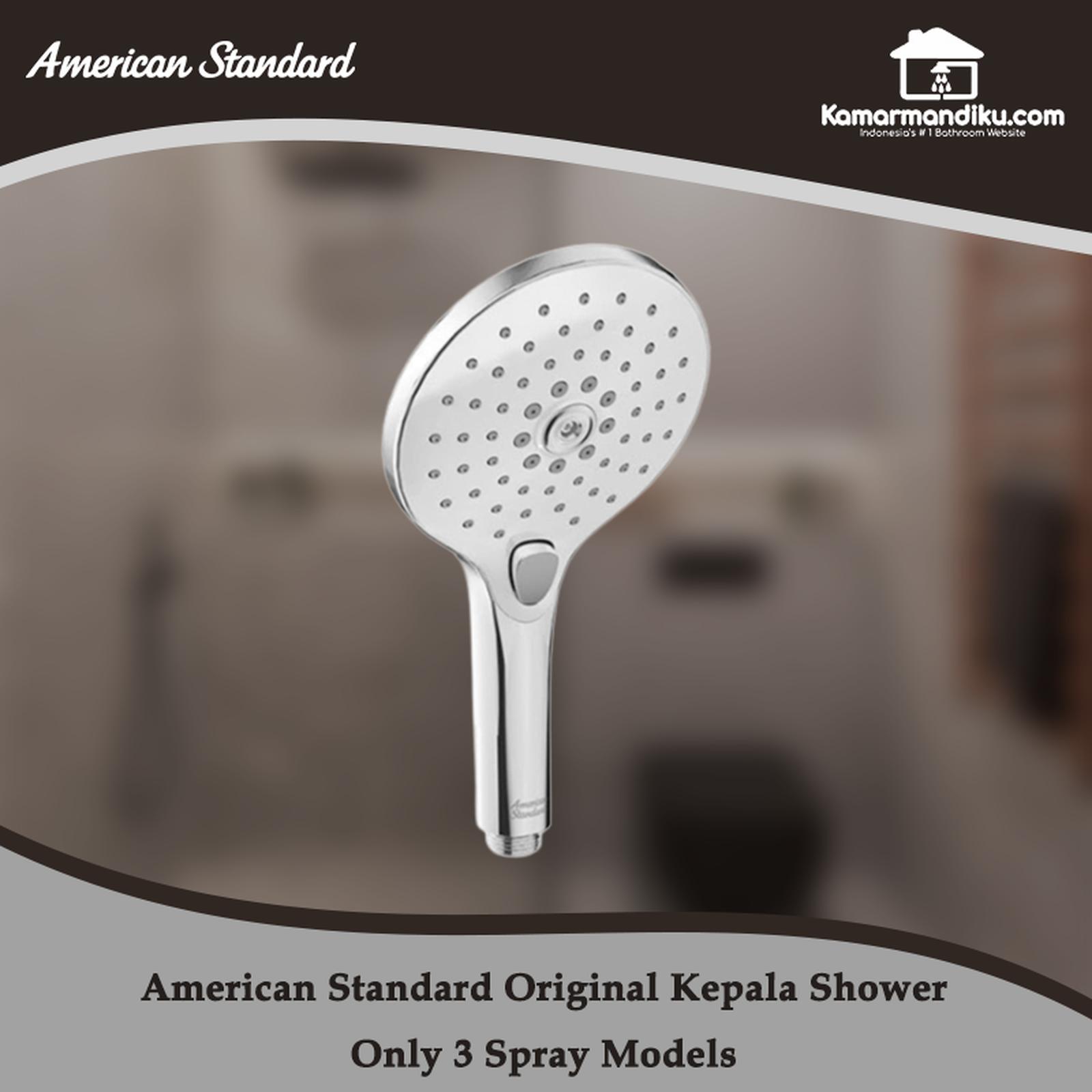 * Hanya Kepala Shower tidak termasuk selang amp;Bracket Original American Standard Material : High Quality PVC , Stainless Ukuran : 1/2 Inch Bisa 3 Model Semburan Air 1. Tranquil Rain 2. Jet Rain 3. Trerapy Rain