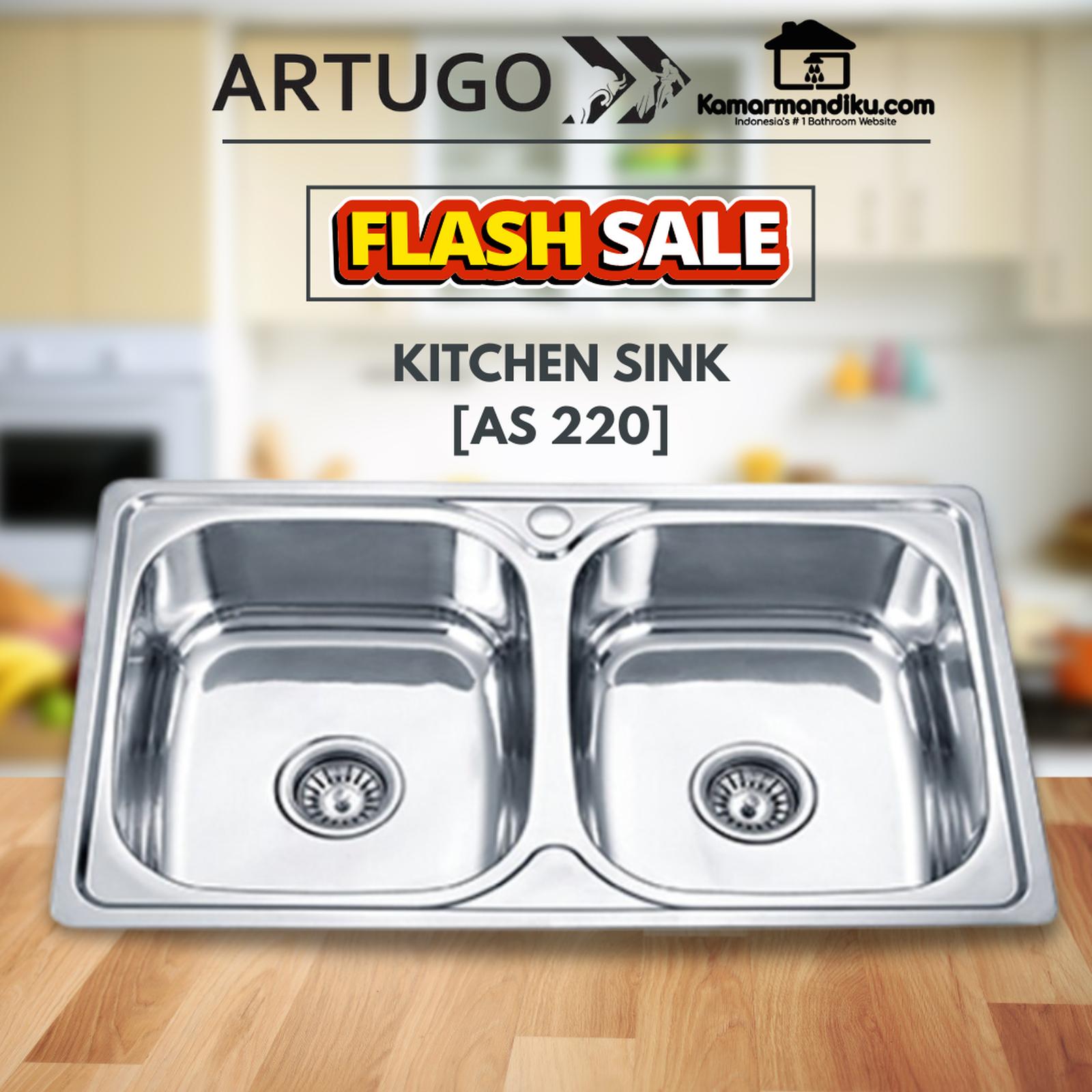 & Free ShippingArtugo Kitchen sink A220 ( 2 bowl ) Bak cuci piring Stainless steel 304 free gift Kitchen sink model terbaru dari Artugo. Desain modern, trend model Eropa 780 x 435 x 170 mm Bahan stainless steel 304 Anti karat dan tahan lama