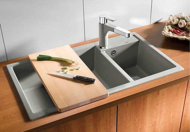 Bersihkan kenyamanan maksimal Desain muda, lurus Garis serap yang menarik dalam kategori harga menengah Mangkuk yang sangat luas memberikan jumlah ruangan yang tidak tertandingi Lekuk tepuk besar untuk pemasangan keran mixer dan dispenser sabun Desain pelek low-profile estetis – Berbagai pilihan warna, mulai dari briliant white sampai exclusive alu metalic – Hangat dan berasal dari alam – Antigores yang tak tertandingi dan kuat sekeras batu – Anti panas sampai 280 C – Higienis, cocok untuk mempersiapkan makanan – Anti zat asam yang dapat menimbulkan noda – Tidak pudar walaupun terkena sinar matahari secara langsung – mudah dirawat