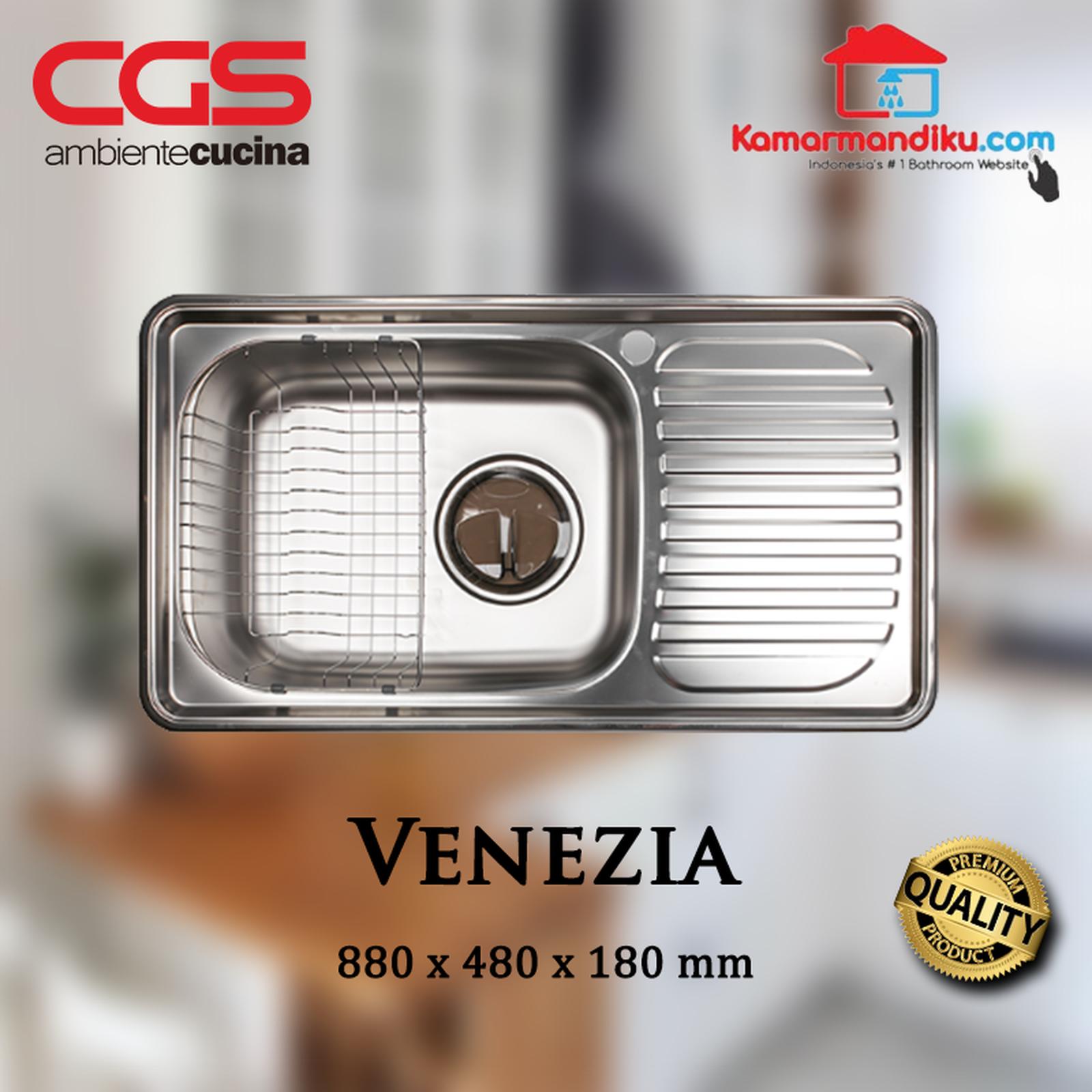 & Free ShippingCGS VENEZIA – Terbuat dari bahan stainless steel 304 berkualitas tinggi – kandungan 18% chrome dan 8% nikel Finishing stainless steel brushed – Fitur : 1 lubang cuci piring yang besar dan dalam dilengkapi dengan drainer (sayap untuk mengeringkan peralatan dapur) – Dilengkapi dengan aksesoris kitchen sink untuk meningkatkan pengalaman Anda dalam mempersiapkan makanan Ukuran sink: 880 x 480 x 180 mm Ukuran lubang sink : 500 x 390 mm Ukuran drainer (sayap) : 270 x 390 mm Kedalaman lubang: 18 cm Ketebalan stainless steel : 0.8mm Free Aksesoris : Wire Basket
