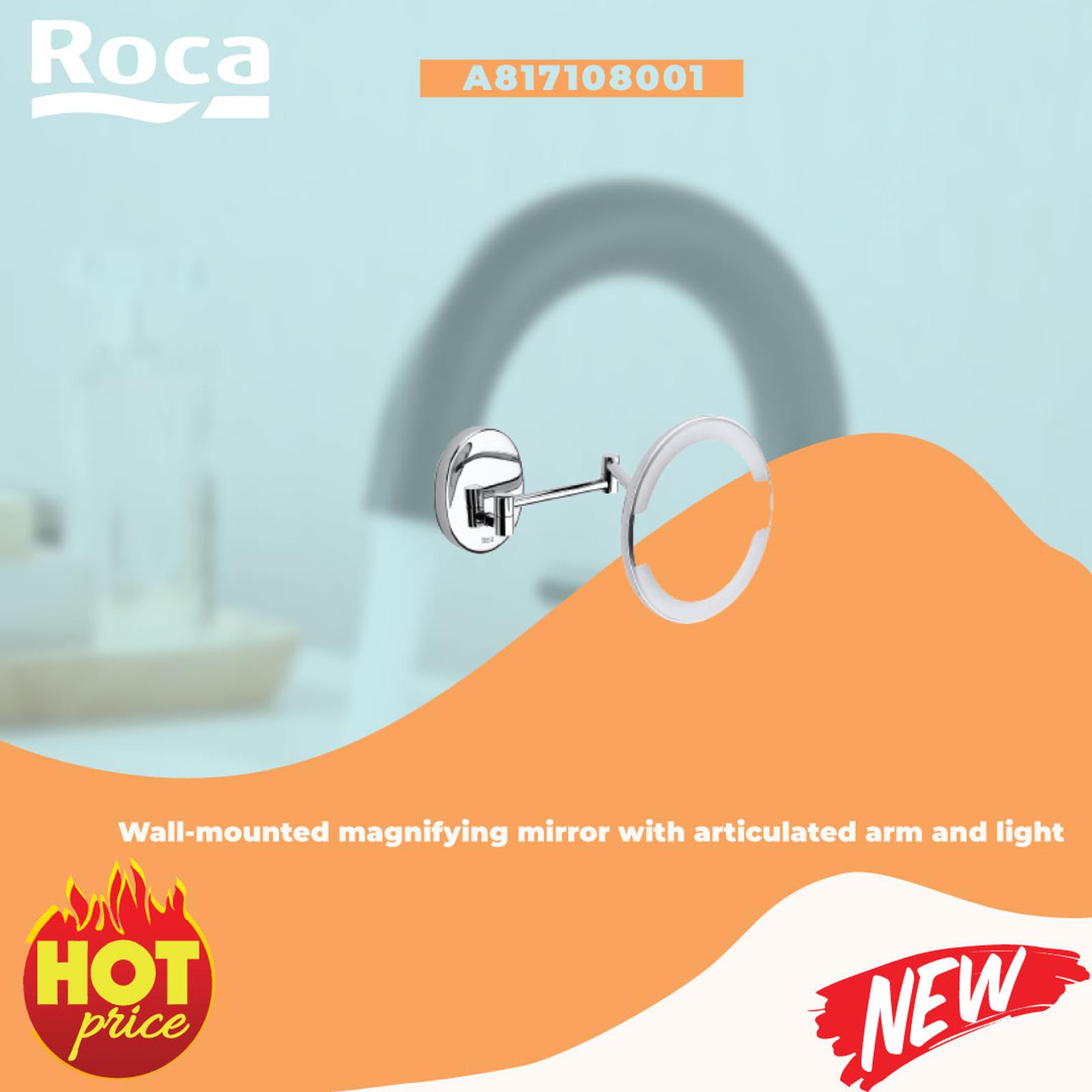 & Free ShippingRoca Hotel’s 2.0 – Wall-hung Magnifying Mirror With Light Ukuran: Panjang: 455 mm. Lebar: 210 mm. Tinggi: 210 mm. Jenis instalasi: Gantung di dinding Pencahayaan: Terintegrasi di cermin Jenis cahaya: Fluorescent Jumlah lampu: 1 Daya per lampu (W): 9 Bentuk: Bulat
