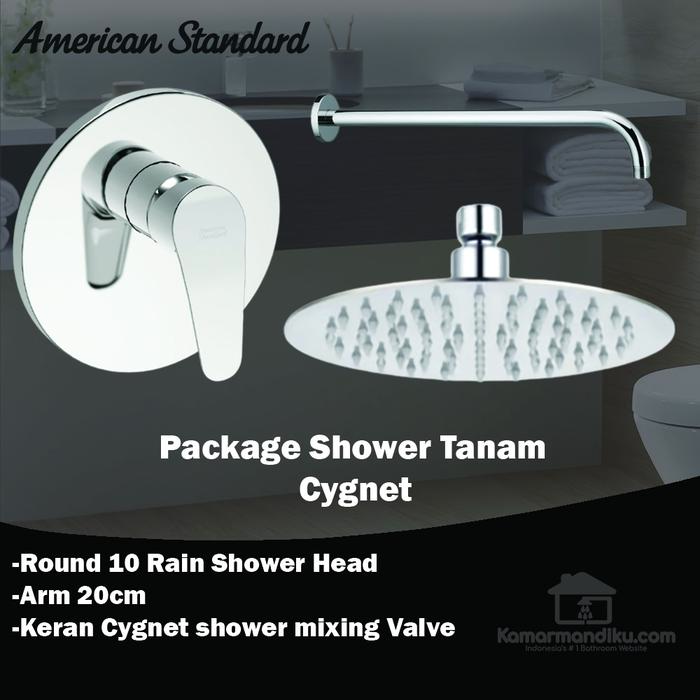 & Free ShippingPaket American Standard shower head round 10 #34; Kran cygnet + arm 20cm Yang Didapat: – Shower head 10 inch stainless steel – keran cygnet concealed shower mixing valve – arm 20cm