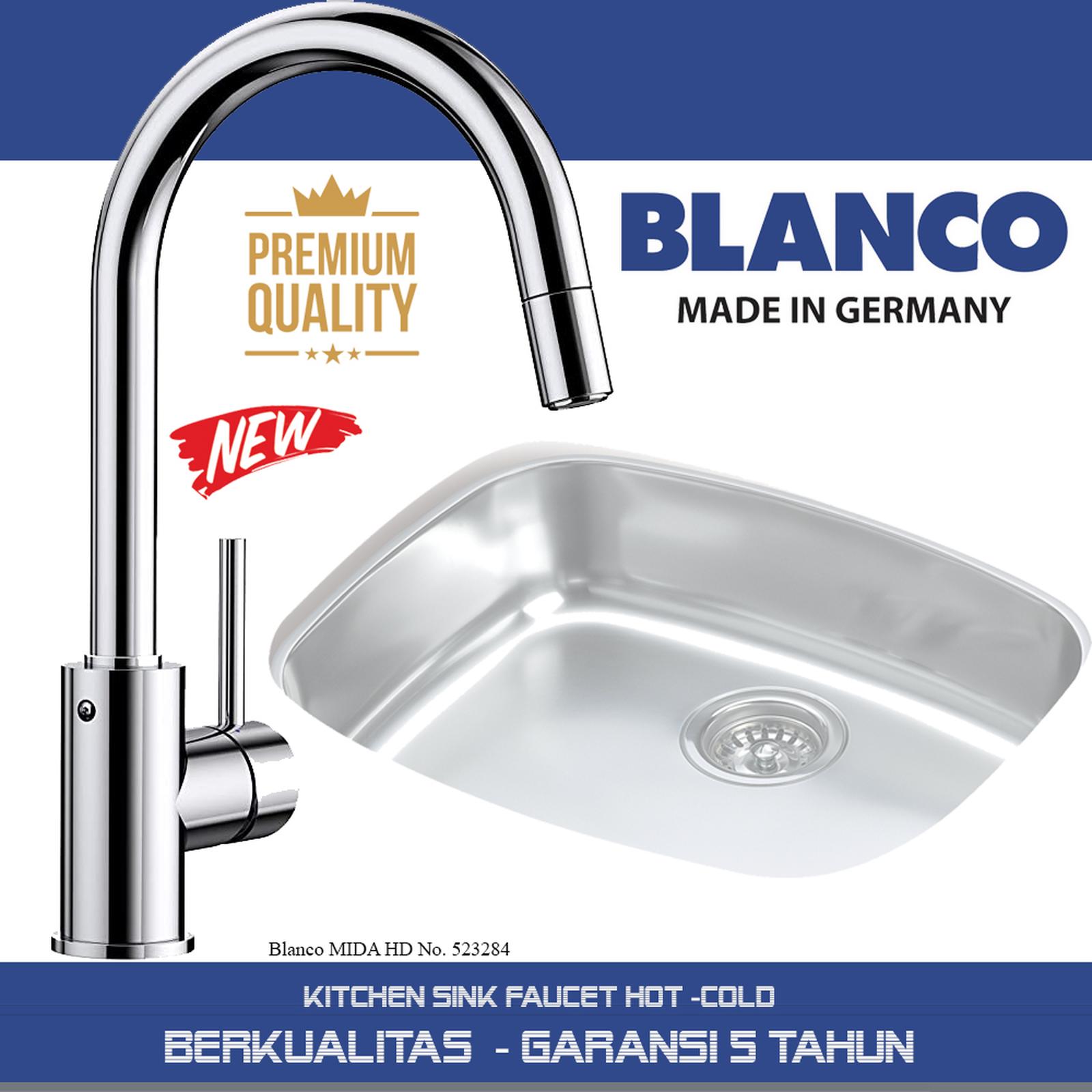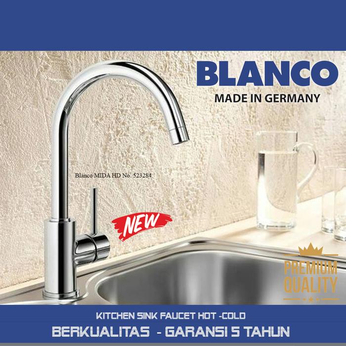& Free ShippingBlanco Keran Dapur Mida HD Chrome, Hot and Cool High spout for easy filling of pans and vases Enlarged radius: spout revolvable 360° 5 Years warranty Single-lever mixer tap The spout can be swiveled by 360° Ø 35 mm tap hole required With ceramic disk cartridge Flexible connector pipes, 350 mm long and 3/8” nut for particularly easy installation LGA approved