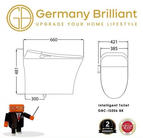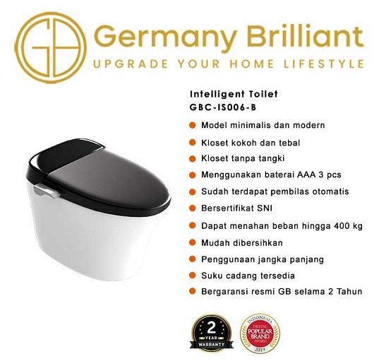 & Free ShippingCLOSET duduk Germany Brilliant GBCIS006-BK – Germany Brilliant menghadirkan closet bersertifikat SNI. – Model minimalis dan modern – Kloset kokoh dan tebal – Kloset tanpa tangki – Menggunakan baterai AAA 3pcs – Sudah terdapat pembilas otomatis – Dapat menahan beban hingga 400kg – Mudah dibersihkan – Penggunaan jangka panjang – Suku cadang tersedia – Bergaransi resmi GB selama 10 Tahun – Jarak AS = 30cm