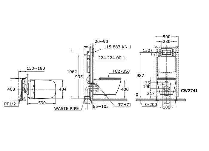 & Free ShippingTOTO Closet Duduk CW274J Wall Hung 4.5/3 L Dual Flush Solid Duroplast Seat Cover SPECIFICATIONS Rough-in: 210 mm Bowl Shape: European KEUNGGULAN Rapid Flushing Dual Flush