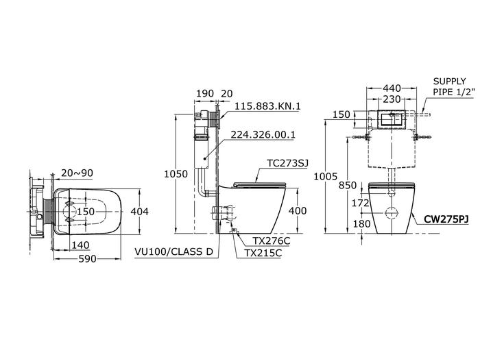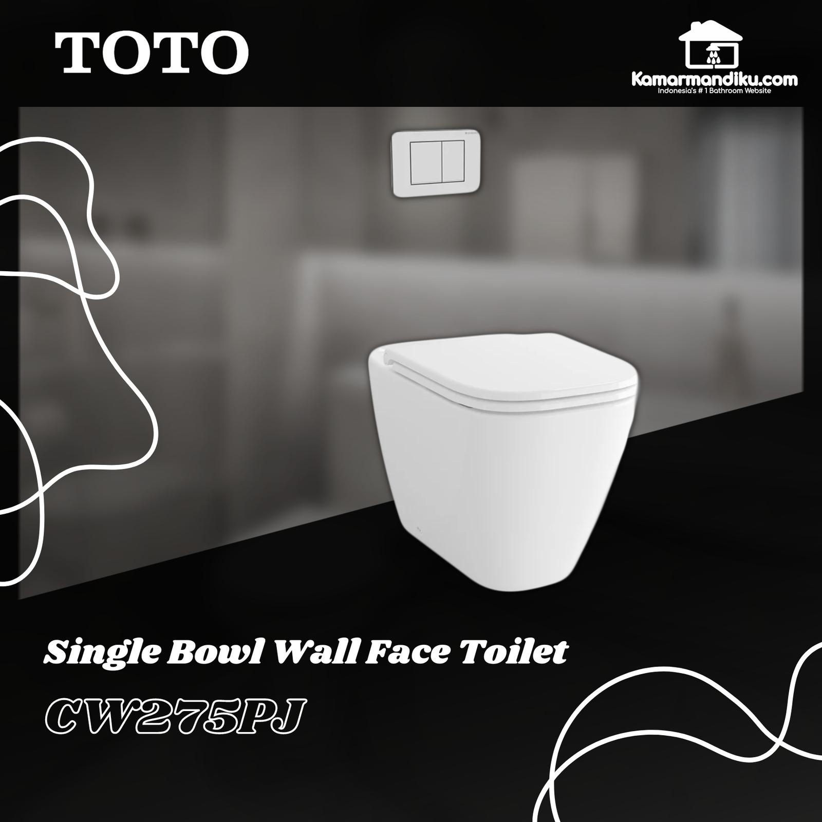 TOTO Closet Duduk CW275PJ Wall Faced 4.5/3 L Dual Flush Solid Duroplast Seat Cover SPECIFICATIONS Rough-in: 180 mm Bowl Shape: European KEUNGGULAN Rapid Flushing Dual Flush