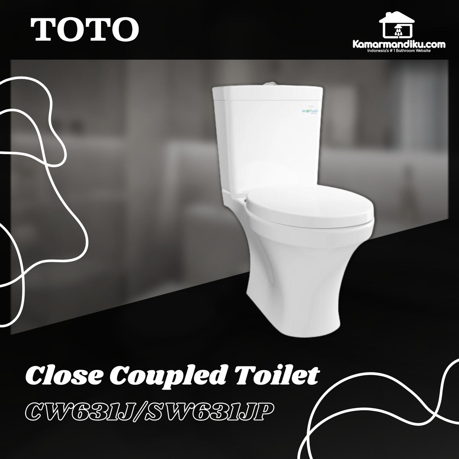 & Free ShippingCloset Duduk CW631PJ / SW631JP (Pembuangan ke bawah) RI – 18 cm 4.5 / 3 L Dual Flush Solid Duroplast Seat amp; Cover Specifications Rough-in: 180 mm Bowl Shape: European KEUNGGULAN Rapid Flushing Dual Flush