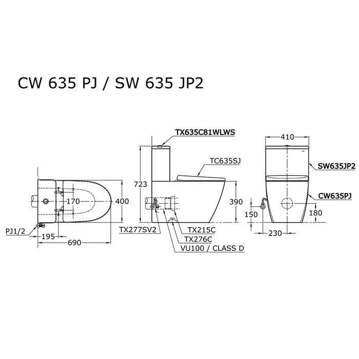 & Free ShippingTOTO Closet CW635PJ/SW635JP2 (P-Trap) 4.5 / 3 L Dual Flush Solid Duroplast Seat Cover Bowl Shape: European Std. SPECIFICATIONS Rough-in: 180 mm Bowl Shape: European KEUNGGULAN Rapid Flushing Dual Flush
