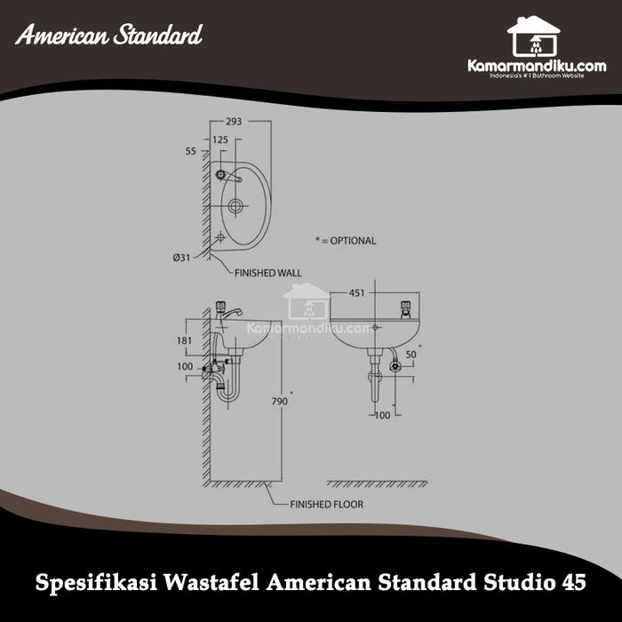 & Free ShippingWastafel studio 45 American Standard warna putih BODY ONLY Model Studio 45 Wall hung Lavatory Ukuran 45cmx30cm Include bracket wastafel dan sekrup