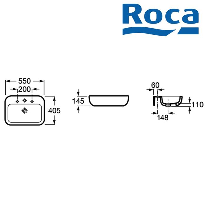 Roca wastafel di atas meja ukuran : 550 x 405 mm