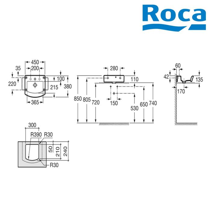 & Free ShippingWall-Hung Semi Pedestal Basins Wall basin with taphole 500 x 485 mm semi-pedestal 230 x 360 x 360 mm