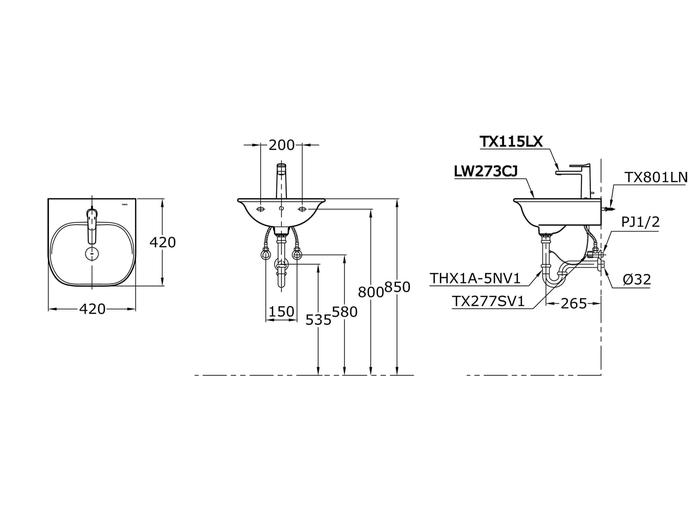 & Free ShippingTOTO Wastafel LW273CJ Specifications Height: 170 mm Width: 420 mm Depth: 420 mm