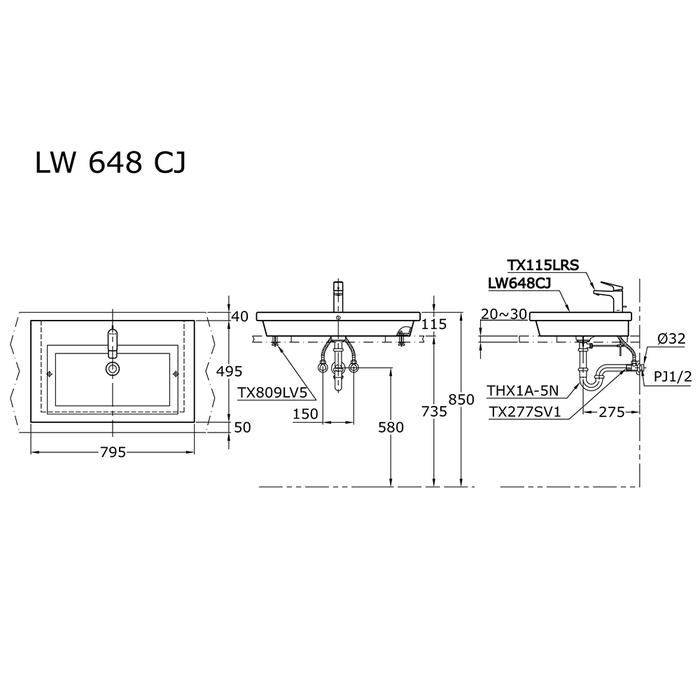 TOTO Wastafel LW648CJ Specifications Height: 110 mm Width: 795 mm Depth: 495 mm