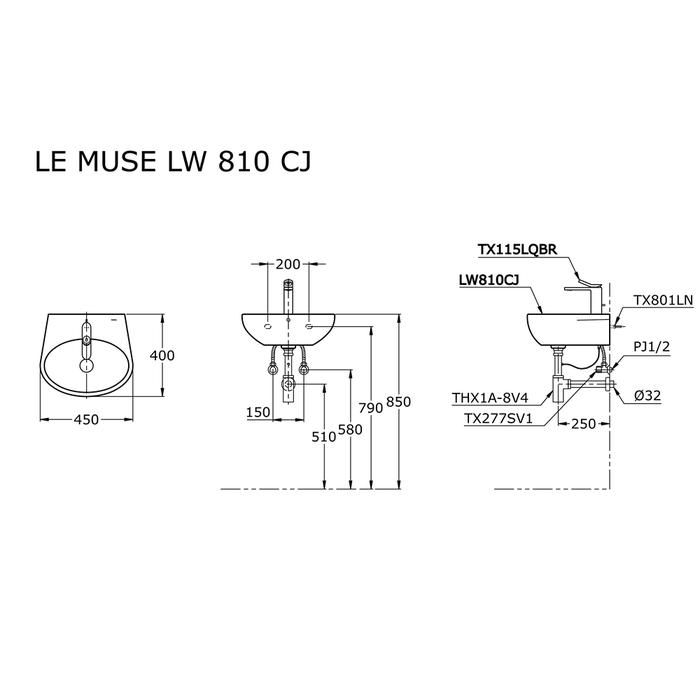 TOTO Wastafel LW810CJ Specifications Width: 450 mm Depth: 400 mm