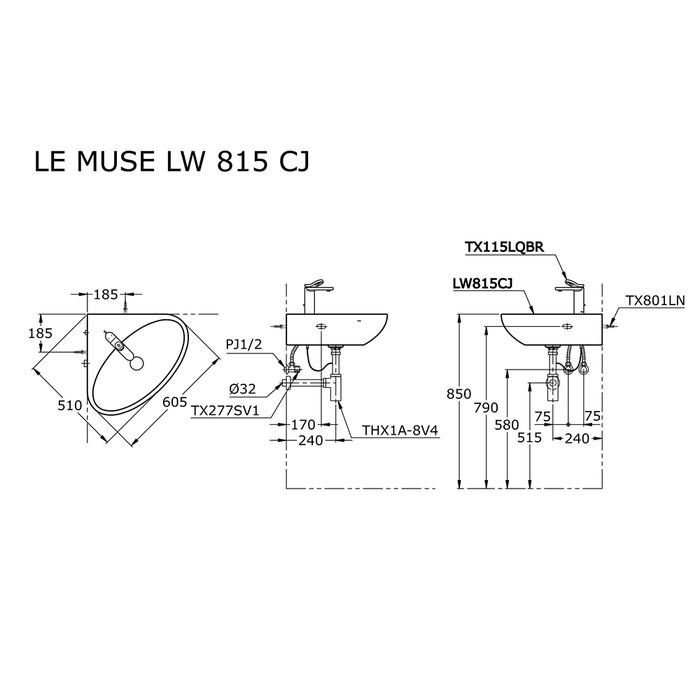TOTO Wastafel LW815CJ Specifications Width: 615 mm Depth: 485 mm