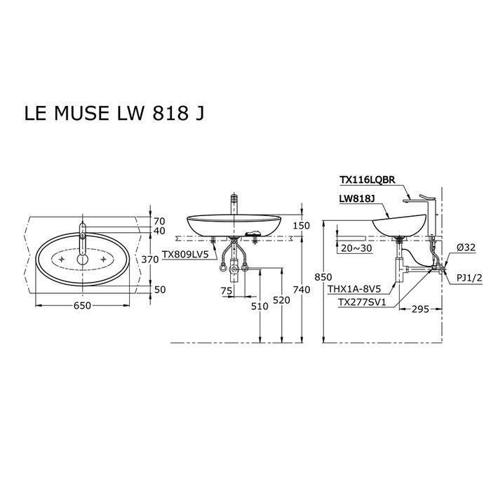 & Free ShippingTOTO Wastafel LW818J Specifications Height: 150 mm Width: 650 mm Depth: 380 mm